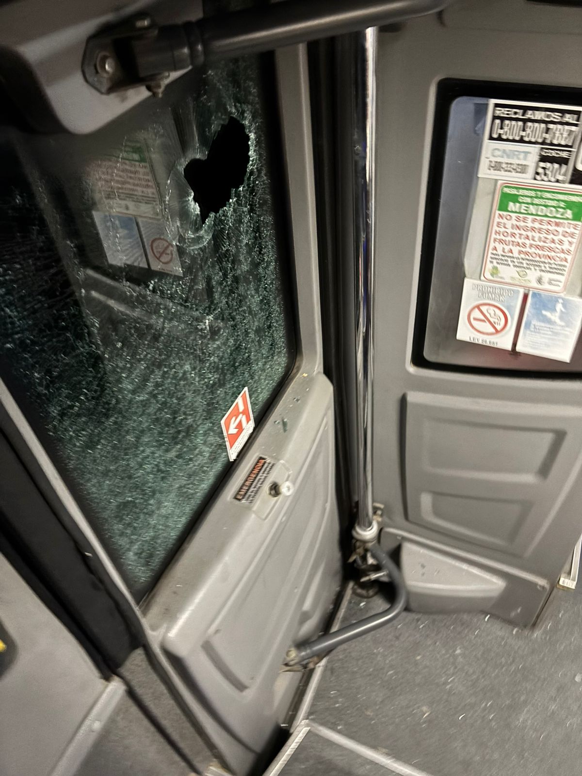 Por el hecho, varios vidrios de la unidad quedaron destrozados, pero afortunadamente no hubo que lamentar heridos.