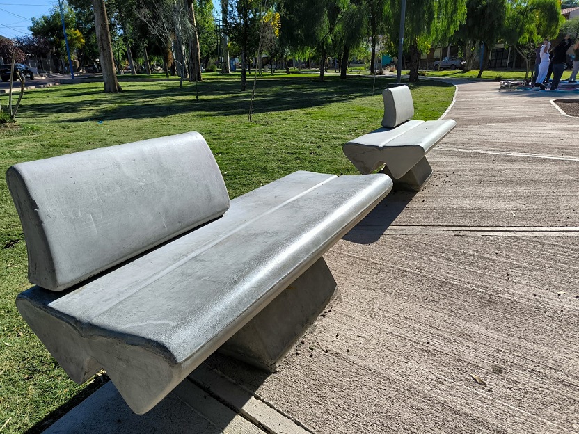 Por otra parte, la obra incluyó la construcción de senderos con dimensiones adecuadas para una circulación peatonal más segura y cómoda. A esto, se suma la instalación de nuevo mobiliario urbano, como bancos, papeleros y bebederos, distribuidos estratégicamente según las necesidades planteadas por los vecinos.