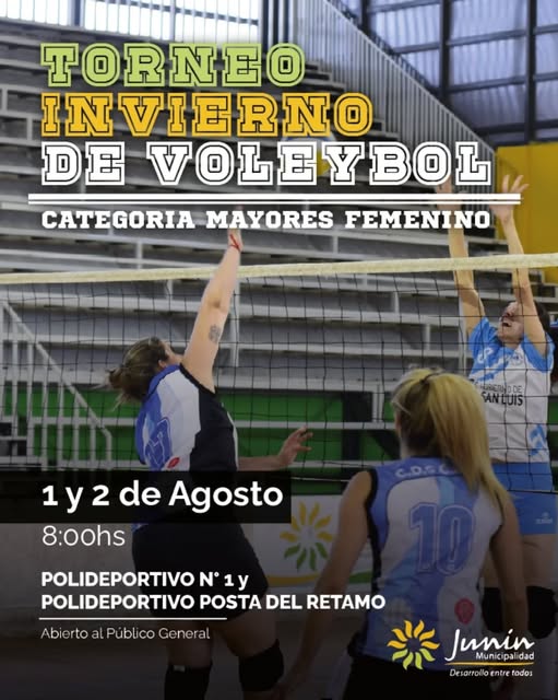 Este fin de semana se disputará la Copa de Invierno, un torneo de vóley femenino en la categoría mayores que reunirá a equipos de distintos departamentos de la provincia. La competencia se desarrollará el viernes 1 de agosto a las 20:00 h y continuará el sábado desde las 9:00 h, en el Polideportivo Nº1 de Junín.