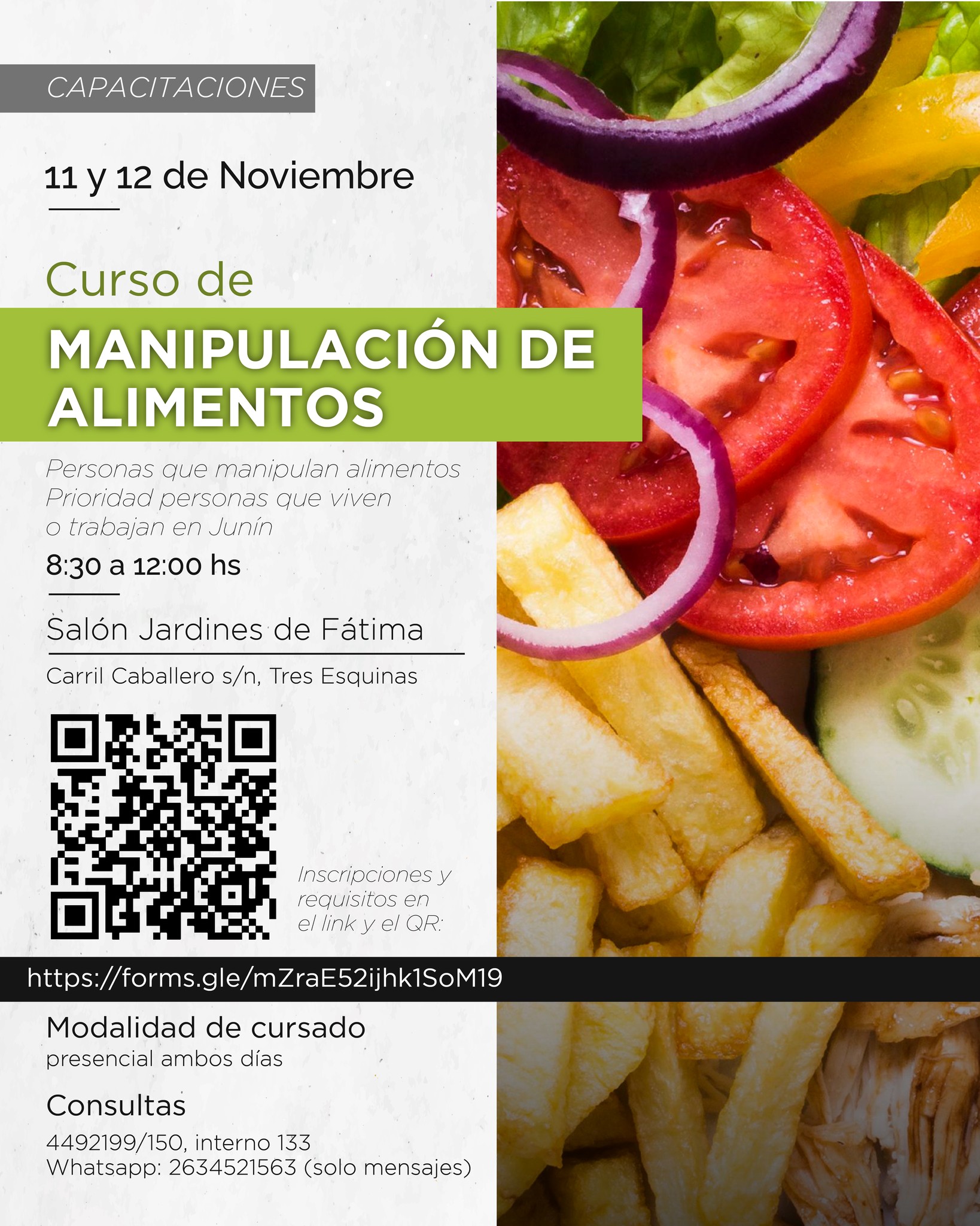 Destinado a personas que manipulan alimentos – Prioridad para quienes vivan o trabajen en Junín