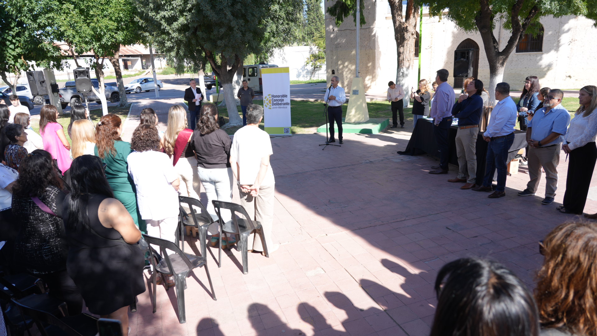 El acto contó con la presencia de Mario Abed, intendente; Ricardo Morcos, presidente del HCD; los senadores provinciales Mario Ana y David Sáez; concejales y funcionarios; además de Mara Lizana Muñoz, reina departamental de la Vendimia; Julieta Cónsoli, reina del Encuentro de las Naciones; y Rosana Escobar, reina del Adulto Mayor.
