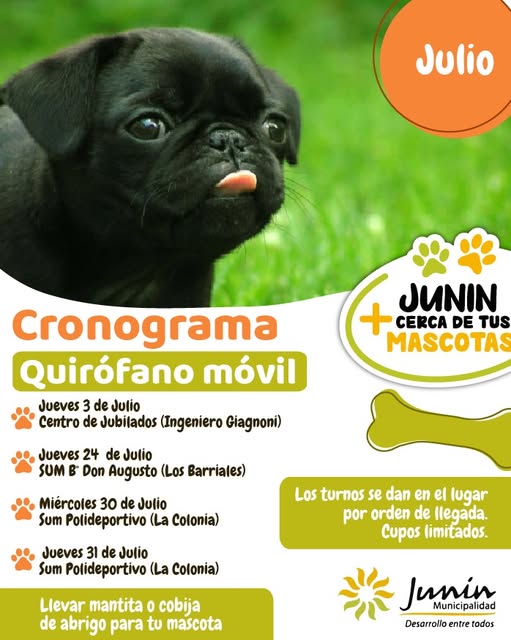 – Lugar: Dirección de Veterinaria del Municipio, calle Salvador González 525, Ciudad de Junín