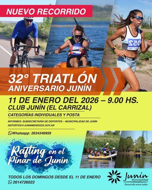 Informes e inscripción Triatlón: Subsecretaría de Deportes – Municipalidad de Junín (WhatsApp: 2634 34 6959)