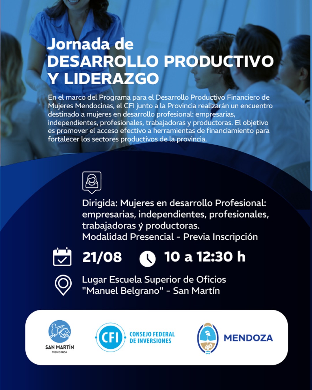 Dirigida a: Mujeres en desarrollo profesional: empresarias, independientes, profesionales, trabajadoras y productoras.