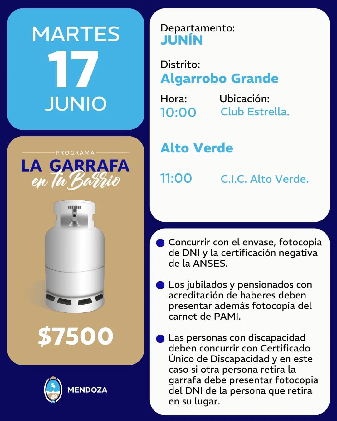 El programa provincial “La Garrafa en tu Barrio” se traslada a Algarrobo Grande y a Alto Verde , donde los vecinos podrán obtener el beneficio a $7.500.