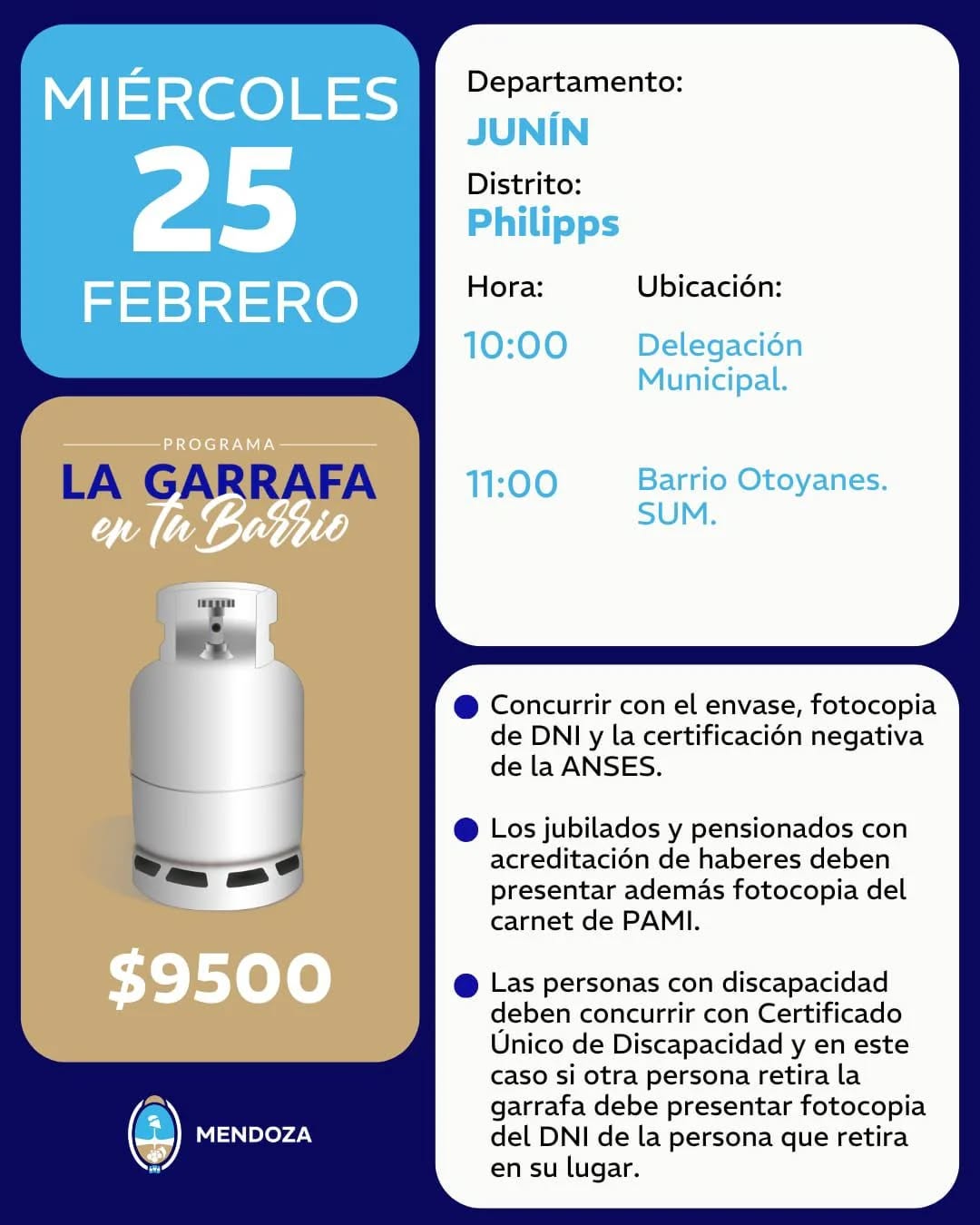 El programa provincial “La Garrafa en tu Barrio” se traslada a Philipps, donde los vecinos podrán obtener el beneficio a $9.500.