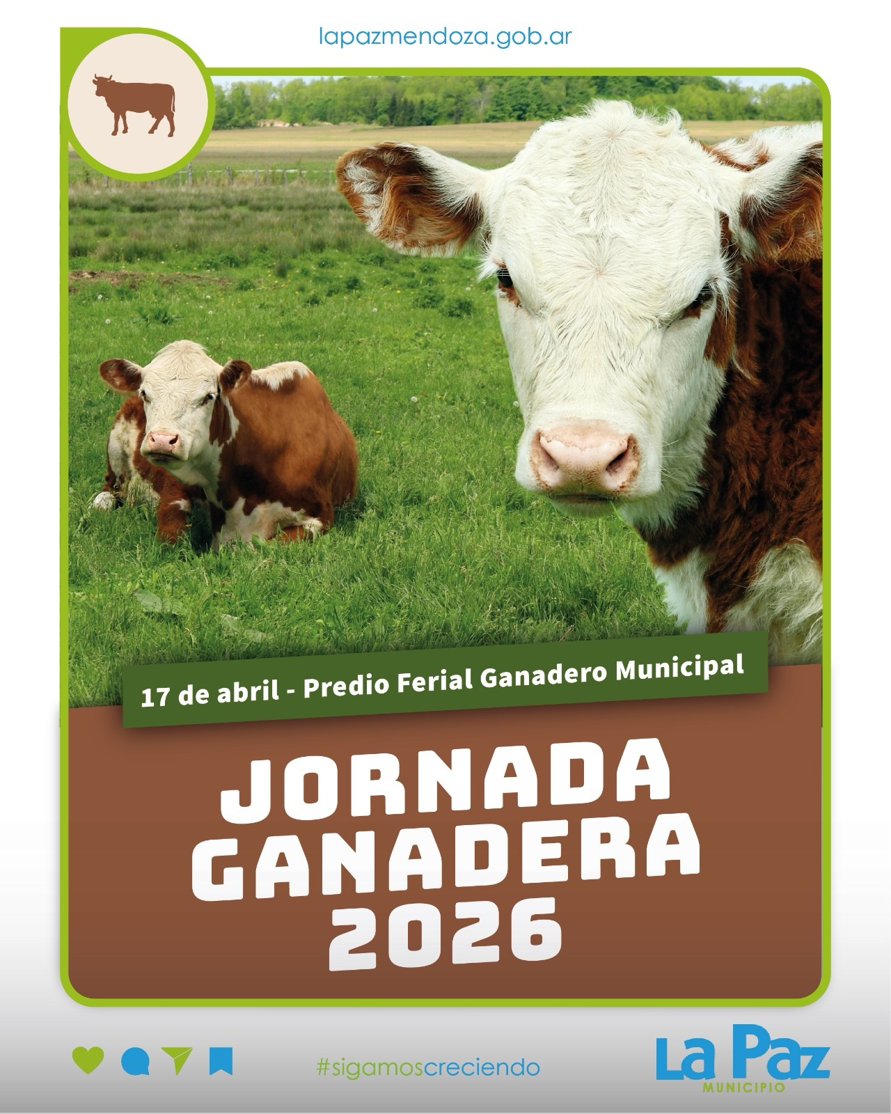 El Municipio invita a productores, comerciantes, estudiantes y público en general a participar de una nueva edición de la Jornada Ganadera 2026, que se llevará a cabo el viernes 17 de abril desde las 9 horas en el Predio Ferial Ganadero de La Paz. La propuesta busca generar un espacio de capacitación, intercambio de experiencias y fortalecimiento del sector ganadero local.