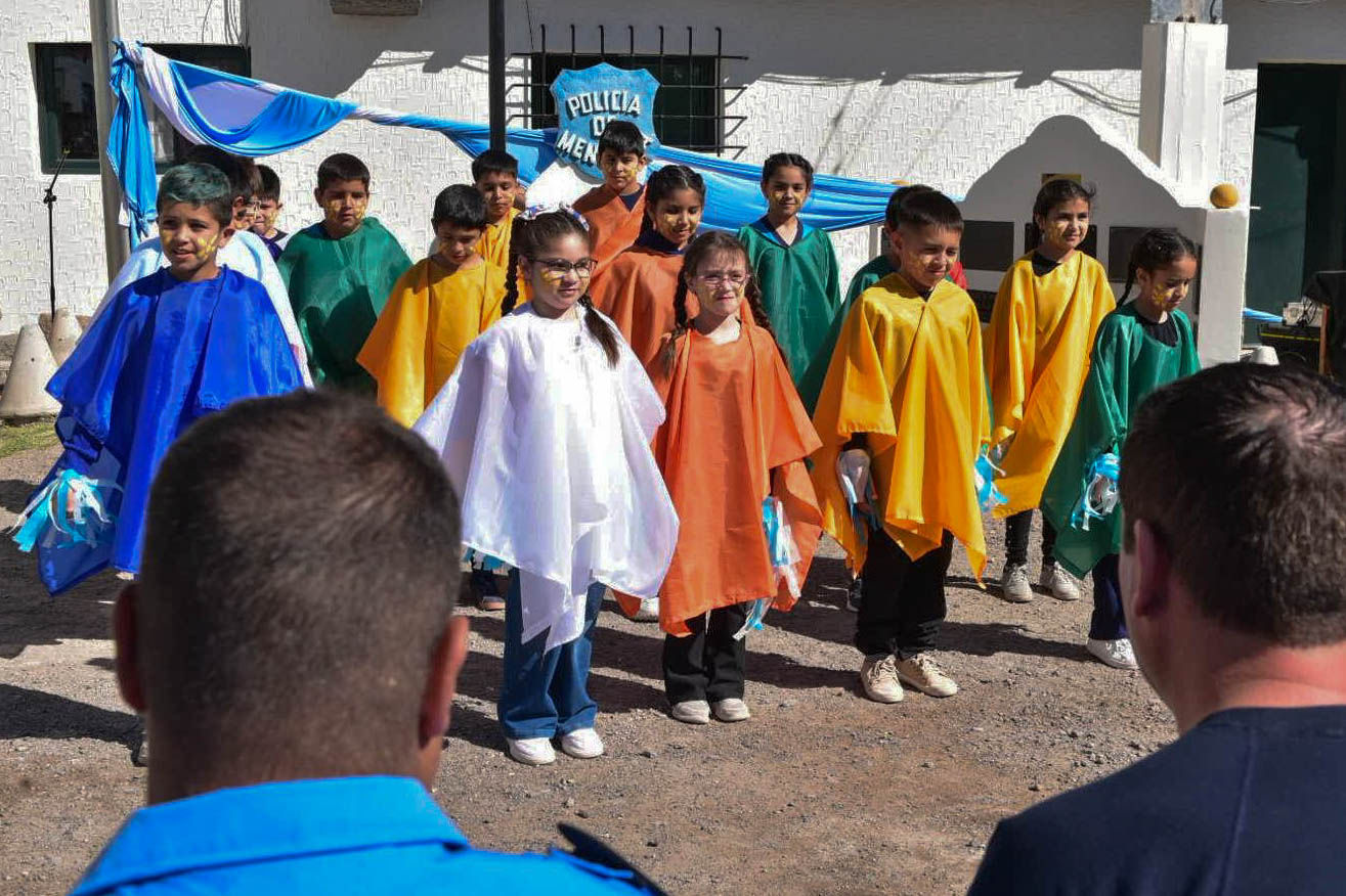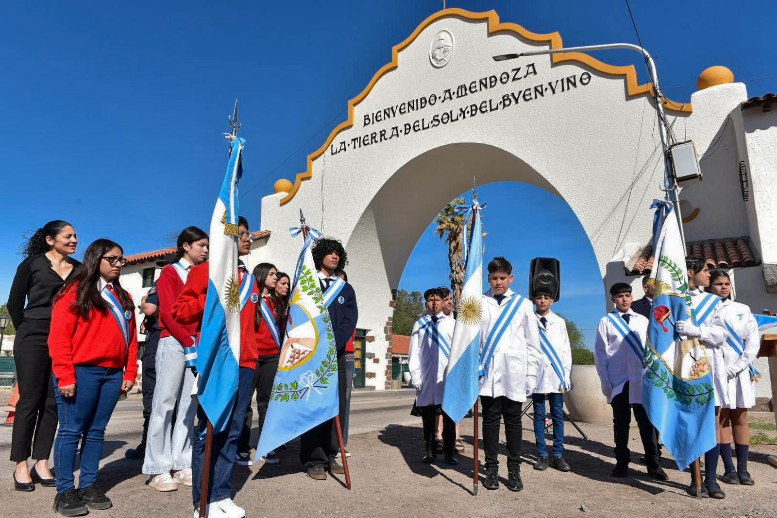 El Intendente, Fernando Ubieta, encabezó hoy el Acto Protocolar por el 89º Aniversario del Arco del Desaguadero, que reunió a vecinos del Distrito junto a la comunidad educativa de la Esc. 8-417 Rubén Dario y Esc. 4-182 Aida Font, en un emotivo acto frente a la emblemática puerta a la provincia de Mendoza.