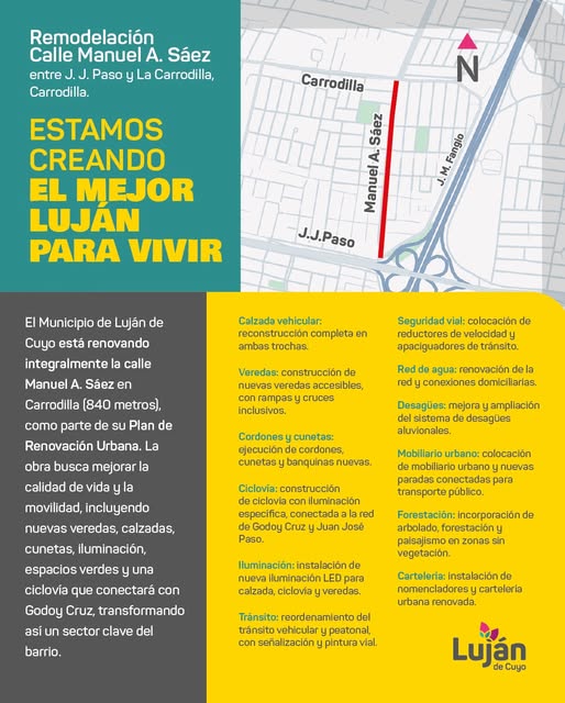 Nueva calzada, veredas accesibles, ciclovía, iluminación LED y ordenamiento del tránsito para mejorar la circulación y la seguridad.