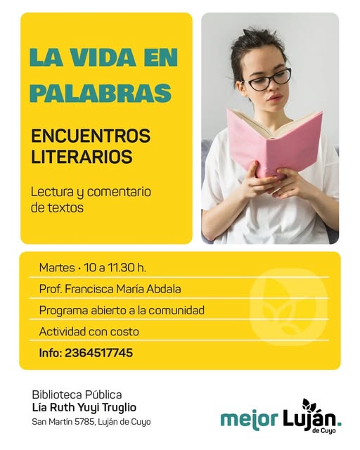 La Biblioteca Pública Lía Ruth Yuji Truglio te invita a participar de encuentros literarios donde compartiremos la lectura y el comentario de textos, en un espacio pensado para reflexionar, dialogar y disfrutar de la literatura.