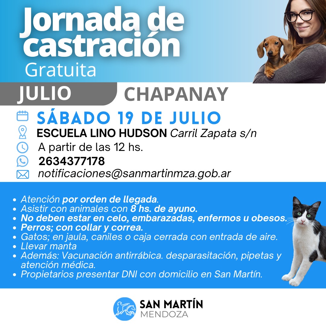 En Julio continúa el programa municipal y gratuito de castraciones de mascotas y atención veterinaria, que realiza la Comuna de General San Martín y que suma más de 50.000 mascotas intervenidas.