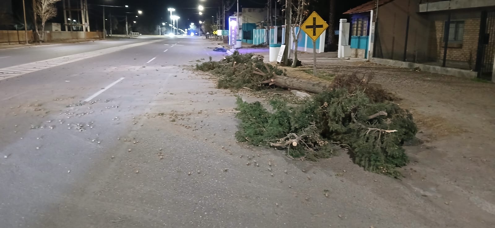 El otro hecho tuvo lugar sobre ruta 50, al este de calle Miguez del departamento de San Martín cuando un móvil se encontraba patrullando el lugar y observó que un pino de grandes dimensiones había caído encima sobre una camioneta Ford Ranger en la que viajaban tres personas; un hombre de 47 años, su esposa de 39 y su hija de 4 años.