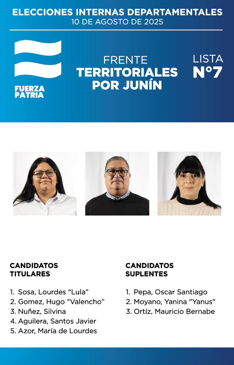 El Partido Justicialista de San Martín presentó dos listas para el próximo 10 de agosto (Frente Fuerza Patria y Soñemos San Martín); mientras que Junín también tiene dos listas (Frente Fuerza Patria y Frente Territoriales por Junín). Para los comicios, la Junta Electoral dispuso de 8 escuelas en San Martín y 4 en Junín.