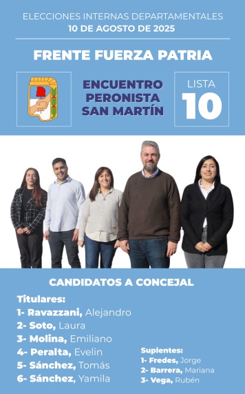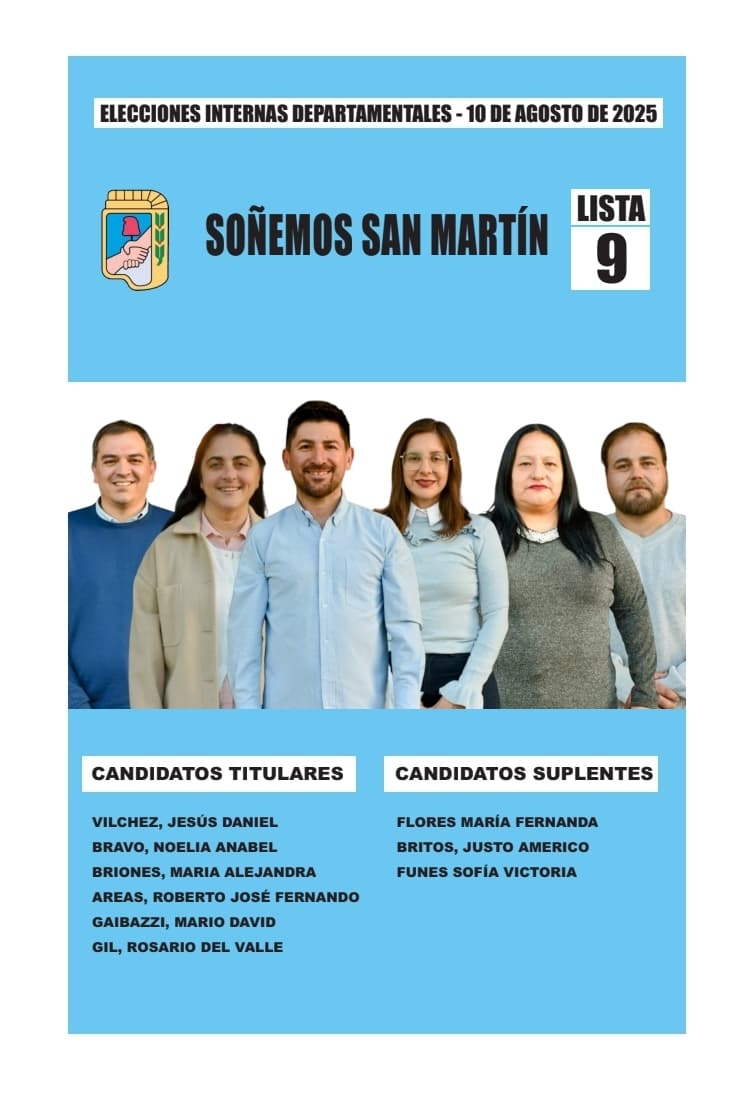 El próximo domingo 10 de agosto se llevarán adelante las elecciones internas del Partido Justicialista en algunos departamentos de la provincia para determinar los candidatos a concejalesAle, dos en la zona Este como San Martín y Junún. En Fm Radio Regional te contamos cuáles son las dos listas y las escuelas en la que sus afiliados e independientes podrán votar.
